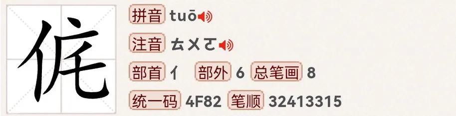 侂,读作侂(tuō),汉语三级字。