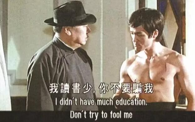 其实,“我读书少,你不要骗我”最早是出自于1972年李小龙版电影《精武门》。
