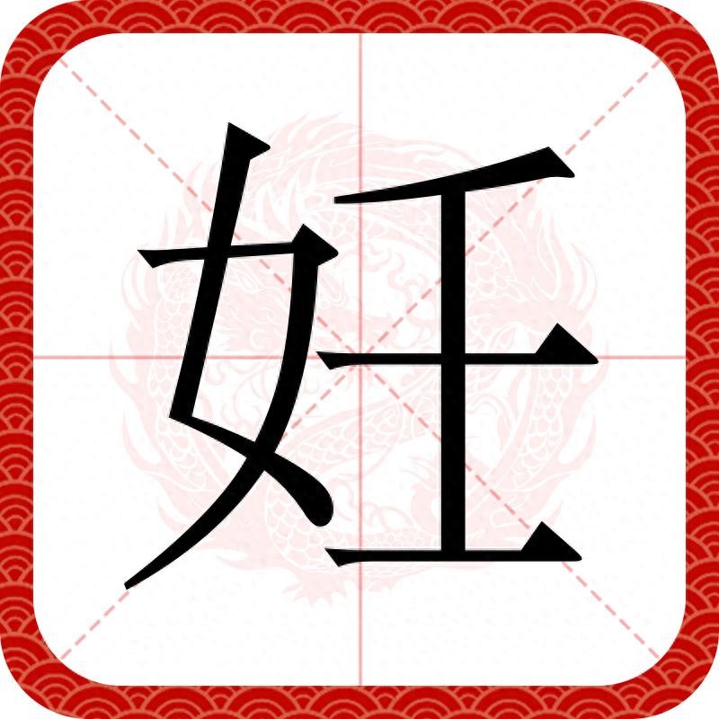 楷书:演变为现在我们熟悉的"妊"字,左边是"女"字旁,右边是"壬"。