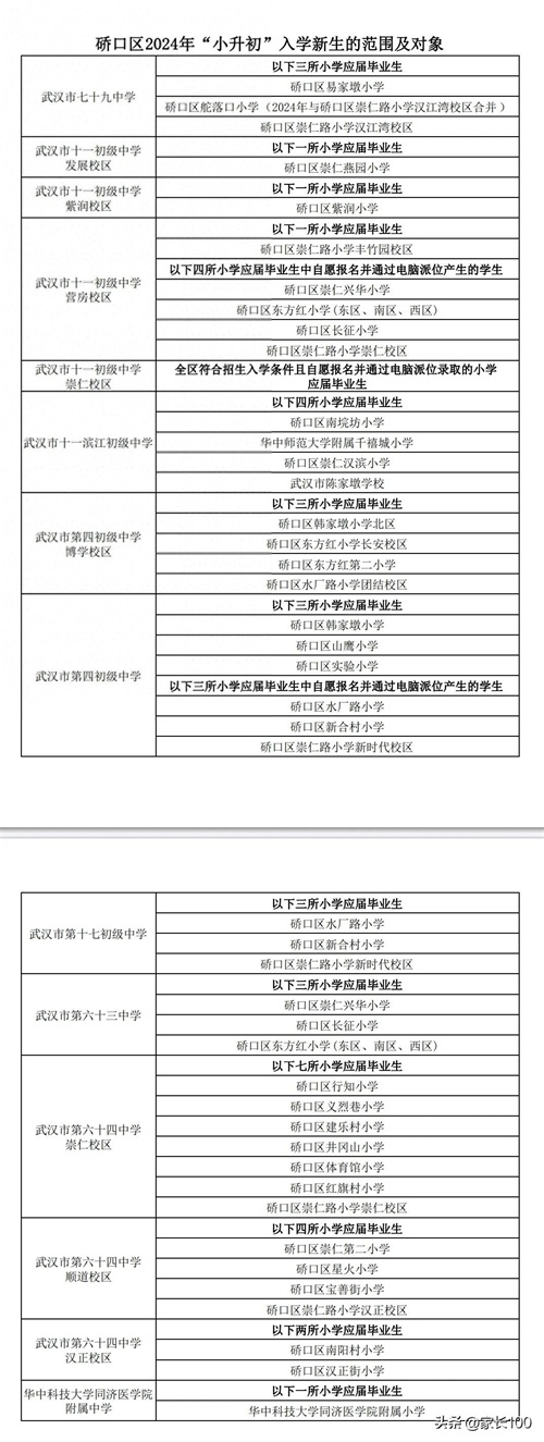今年对口划片已出,硚口区“多校划片”情况如下: